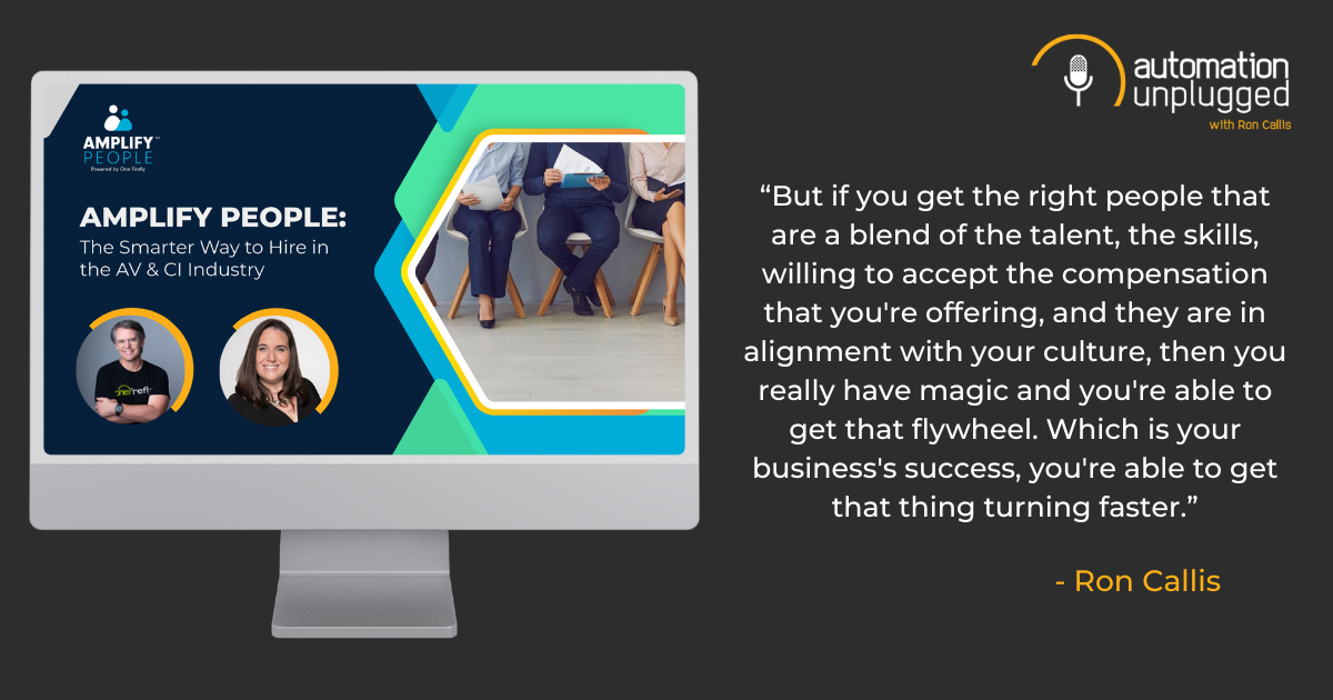 That's great. Great job, Sam. So what is it like to work with Amplify People? What is it like to work with us? This is actually Johann, one of our repeat clients out of Texas for Amplify People. And he's been on Automation Unplugged. So if you want to hear that interview and learn more about Johan and his awesome business tune into Automation Unplugged. So here's the types of businesses that we are going to be a great fit for, and we already accept in advance that we're not a great fit for everybody, and that's okay. We want you to know who you are. Why are you in business? What do you stand for? What makes your business different than those in your marketplace? We want you to be a great place to work, right? It makes us, it makes our job easier. When we are out there finding talent and placing them in great businesses, not only does it make our job easier, it also feels better for us. Do you want, would we want to place people in rotten workplaces or in great workplaces? We want to place them in great workplaces. It's going to be good for your business and it's going to be great for the candidates. It is all about reputation, and that's how our reputation's going to continue to grow. We want you to be flexible. Meaning that you might think you are willing to pay X or you might think that this person needs to have, I'm going to give a scenario. Maybe you think they need to be in the office, but maybe it actually could work where they could be hybrid, some in the office, some at home. There's a whole plethora of scenarios that we're going to use our experience and the fact that we're talking to candidates every single day, and we are doing hiring every single day, and we're going to want you to be willing to maybe sometimes meet in the middle if necessary, to get that great next placement for you if you're more flexible and willing. It's going to make you a better customer for us and a better partner. 'Cause we ultimately want to work with you for the long term. We want you to be able to commit to the process. So for example, in an effective hiring modality you cast a very wide net. You get a lot of candidates in. We then filter through resumes, conduct phone screens, there's a filtering process. Think of it as a funnel and as we go through the phone screening, go through the long form interviews, go through the culture fit interviews, ultimately we're going to land at final candidates. That does not happen overnight. Sometimes it takes weeks. There's some occasions it takes months, but it is better for your business to hire slow and hire right than to hire quickly and bring the wrong type of hires onto your business. I can tell you, I've been in business 17 years and I think we do it right today, but there's plenty of time in my past where we didn't do it right. And we would hire fast to put a warm body in place and if it wasn't a great culture fit, it can be toxic to your organization. We're looking for people that want to partner. Again, we're looking for a long-term partnership. There aren't exactly big dollars in these transactions, at least between us and you. So this is really about a long-term relationship. We want to be valuable. We want to aid your growth and we want to help you for many years to come. We need you to be great communicators. Meaning if we email you or call you, we need you to either take that call or respond to that email. If we make a meeting with you, we need you to attend that meeting. So it, it really breaks down when we've got great candidates, we're ready to deliver them, and then we get ghosted or get silence from you. We will fire clients that fall into that category, we can't operate on your behalf and help you with hiring if you aren't equally responsive back to us. So again, we're looking for equal and bilateral communication. And we're looking for transparency. If there are some challenges going on in your company or if you've had challenges filling this role, we want you to talk to us about that. Tell us transparently so that ultimately we can consult and advise to help you find that next best fit. This is really about us having mutual success here. And the folks that we are not a good fit for. By the way, we had to learn the hard way. 'Cause we said yes initially to some folks that were in these categories. So we've been learning as we go. We can't have you operate with unrealistic salary expectations. If the market rate for a position is $80,000 and you're telling us you're willing to pay $40,000 and it's a competitive marketplace, today we actually would not accept the partnership. We would not accept you as an Amplify People client. But there was a point where that was not true and we tried. It doesn't work. So we need you to advise on what's within the constraints of your ability to pay fair rates for roles and then that positions us to go out there and find you the absolute best talent that's a great fit for your company. Impractical job responsibilities. We've heard scenarios where people have come to us and said they wanted a payroll person slash operations manager slash project manager slash technician. And by the way, they need to know how to program Crestron and Savant. That person does not exist. Or if they do exist, they're a needle in a haystack. So sometimes we need to segment out roles and responsibilities to provide more scalability and frankly, ease of getting the right talent into your business. And then let those people be experts in their areas of domain. And then if you want to cross-functionally train them into other capabilities, have at it. But it's really a matter of being reasonable there. And then if you have a high turnover rate today, it means there might be something going on in your company. Maybe it's not your fault, maybe it is your fault. A lot of times, problems within organizations start at the top. So we'd really want you to take a good look at your company. Are you having turnover issues? We'd want those to be a