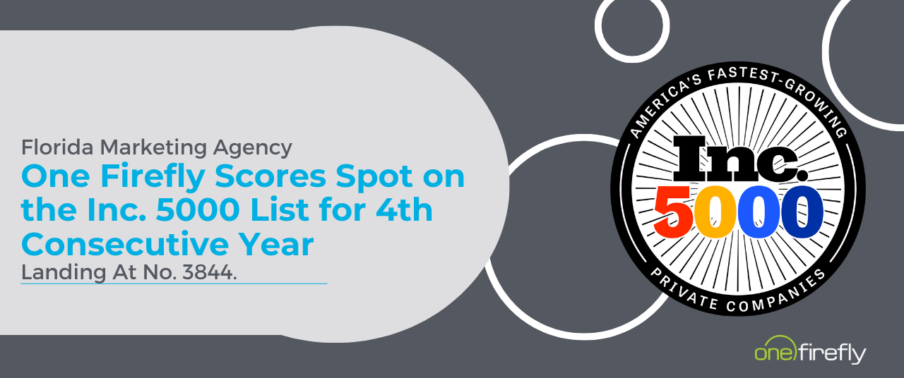 FLORIDA MARKETING AGENCY ONE FIREFLY SCORES SPOT ON THE INC. 5000 LIST FOR 4TH CONSECUTIVE YEAR — LANDING AT NO. 3844.